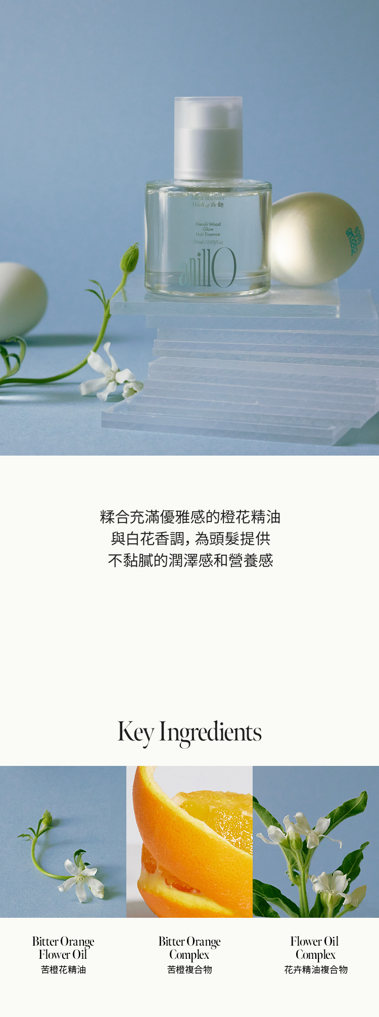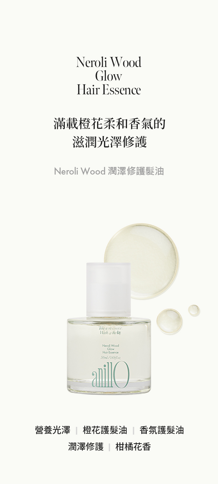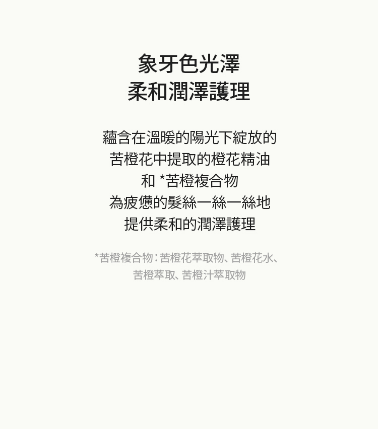 滿載橙花柔和香氣的滋潤光澤修護髮油