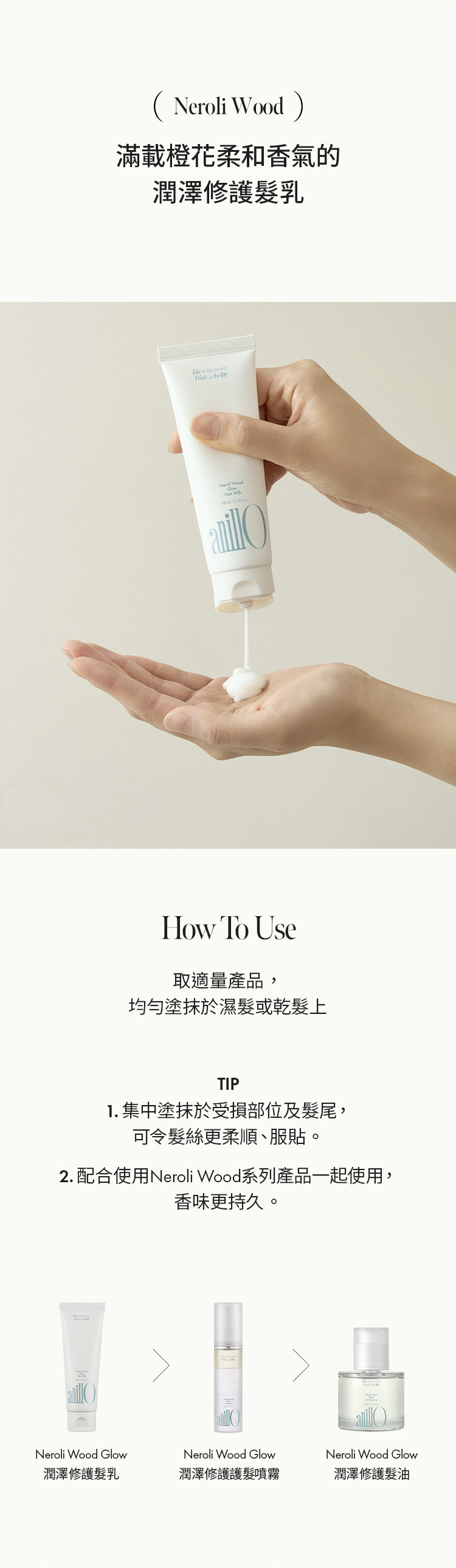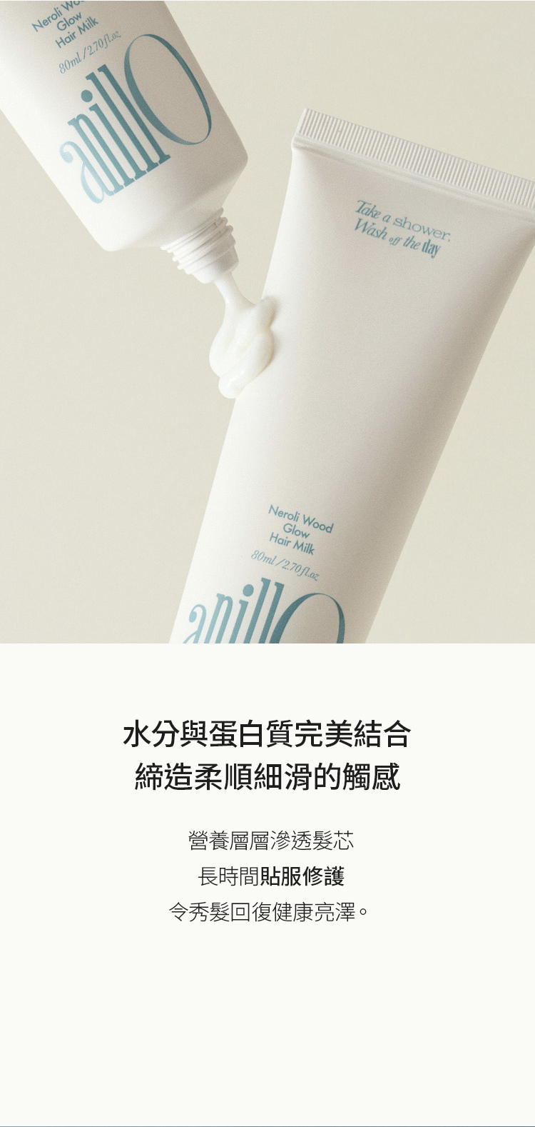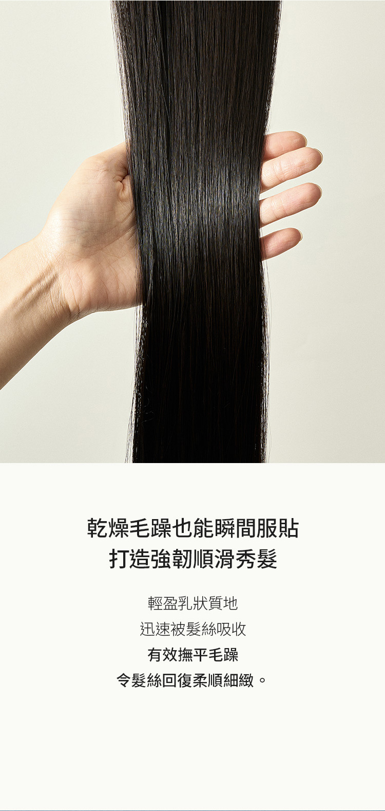 輕盈乳狀質地能迅速被髮絲吸收